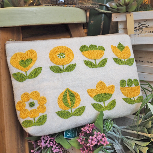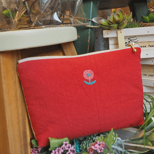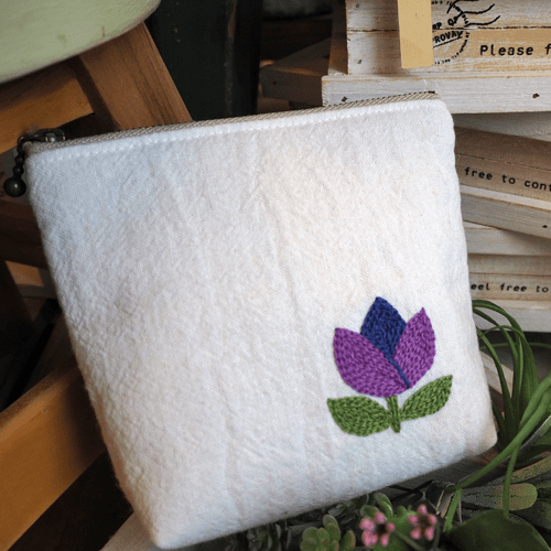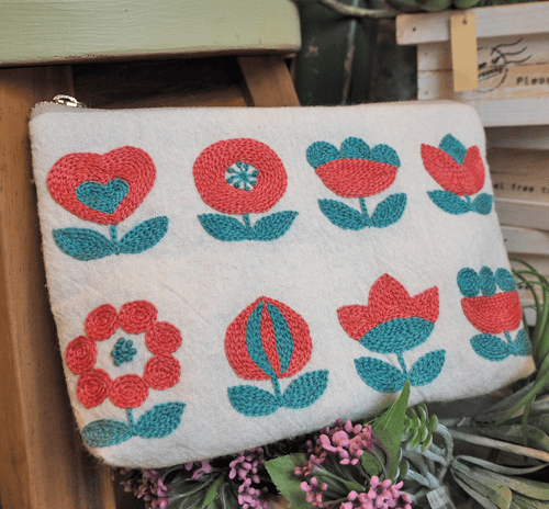 北欧風の刺繍が丁寧に施されたシンプルなポーチです。