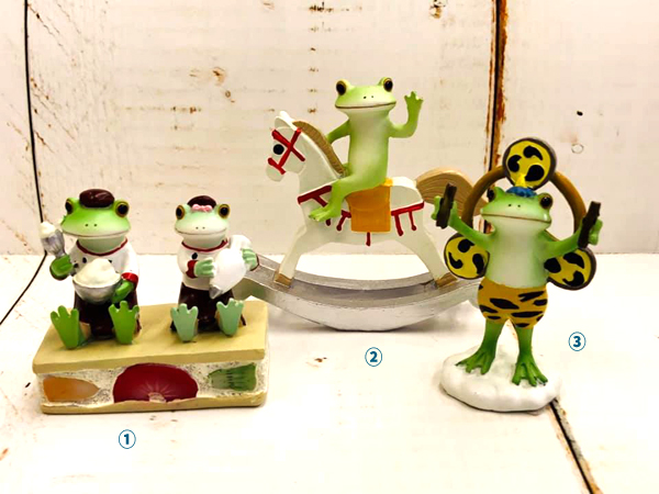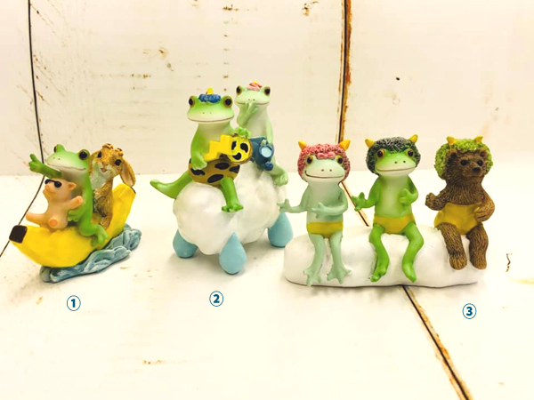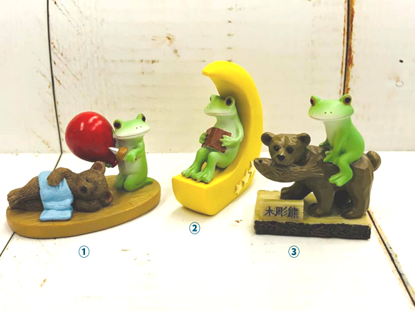 ①風船割っちゃう?? ¥1540 ②月夜の読書 ¥1100 ③木彫りクマ ¥990