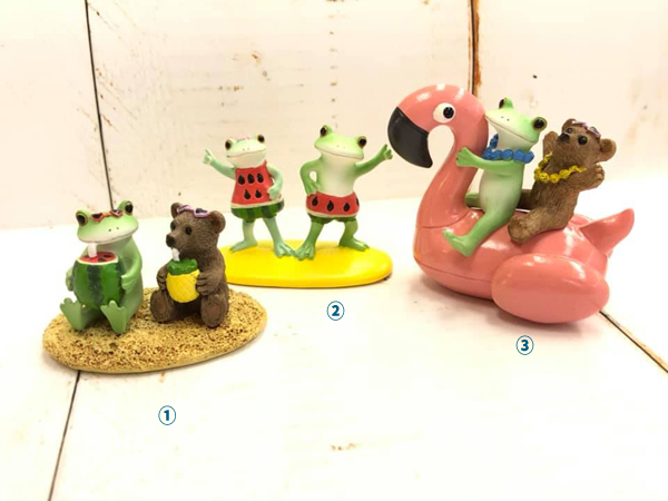 ①ビーチでジュース ¥1430 ②スイカパンツ ¥1320 ③ フラミンゴ ¥1760