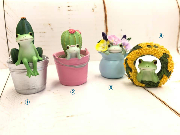 ①~②多肉 ¥1100 ③ビオラとコポミ ¥1320 ④ミモザリース ¥990