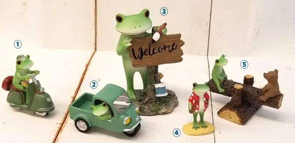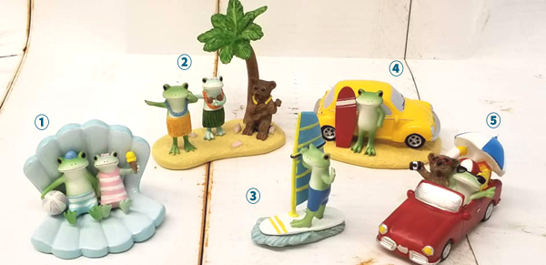 ①レトロバイク ¥1430 ②三輪自動車 ¥990 ③ウエルカムボード ¥1760 ④アロハシャツ ¥770