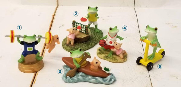 ①重量挙げ¥1210 ②卓球勝負 ¥1870 ③カヌー ¥1430 ④バスケット¥1210 ⑤キックボード¥880