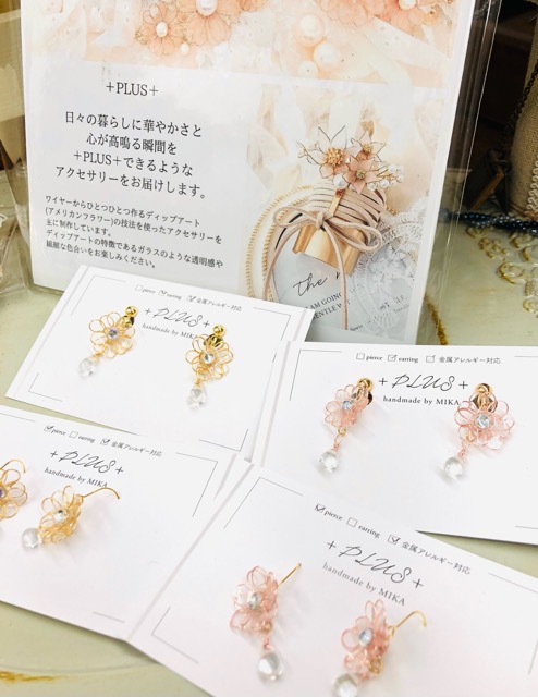 ∔PLUS+さんのアメリカンフラワーのアクセサリー達。