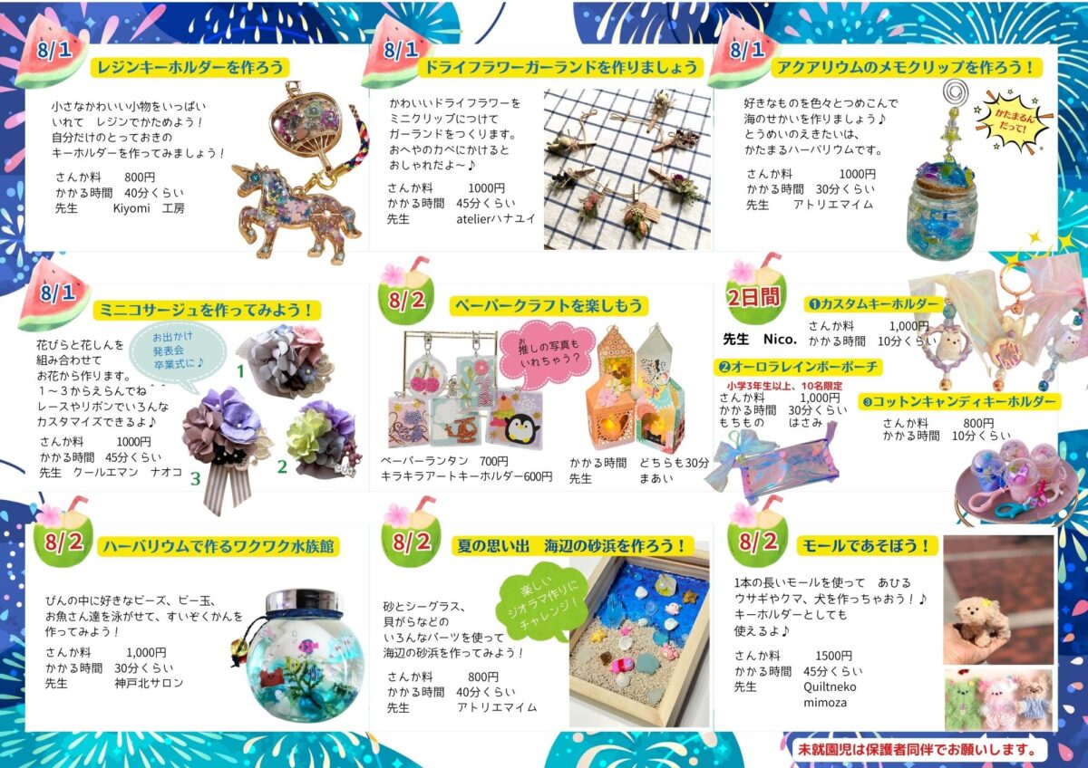 えるむプラザで開催する夏休みのワークショップです。