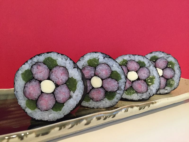 今回のテーマは「お雛さま」をイメージしたとても華やかな巻きずしになっています。3月3日は初めての開催になりますが、お二人は「アトリエチャット3周年記念」企画で当選されたお客様が2名様おられますので、 あと2名の方を募集させていただきます。